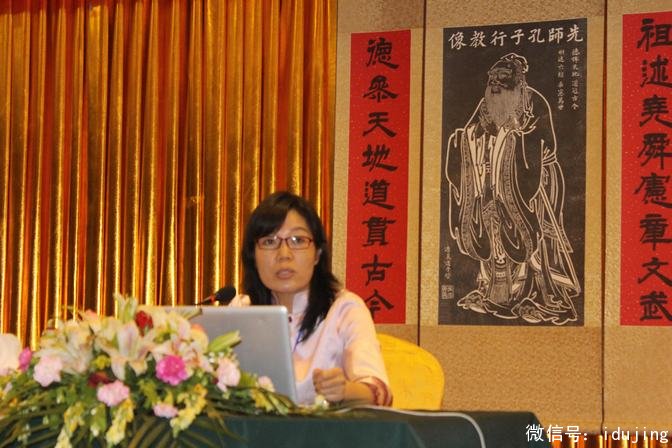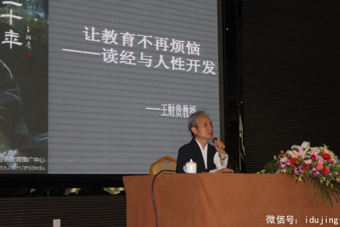 教授正在为大家讲述《让教育不再烦恼——读经与人性开发》。