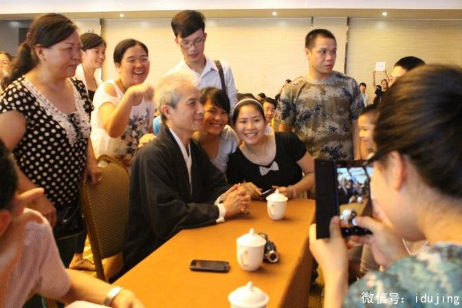 演讲正式开始前休息片刻,知音朋友不失时机地上前与教授合影。