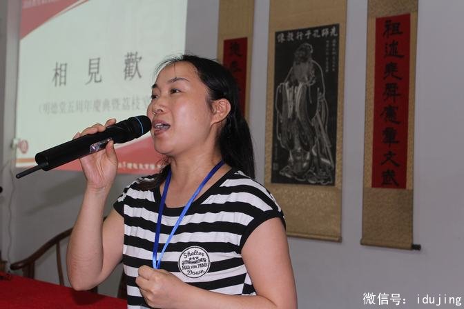 夏星云女士主持相见欢,脸上无法掩饰的满心欢喜。(夏星云女士是全家深受益,无比幸福的怀孕读经宝宝的母亲。)