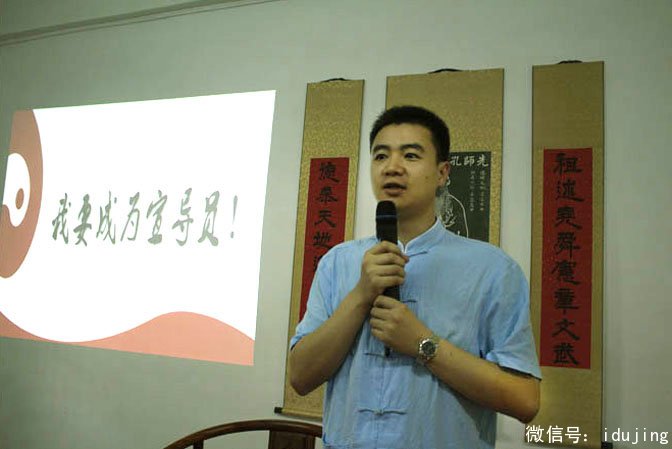 上图:胡毅先生,重庆市典汇书院负责人,面容端俊、年轻有为,身子透着一股正气,对读经教育充满热情,参加培训后,信心百倍,当即立志做老实大量读经的学堂。