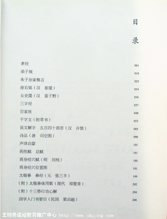 太极拳 拳经、(附)太极拳体用歌(郑曼青)、(附)十三势行功心解、国学入门书要目(梁启超)。后记 。