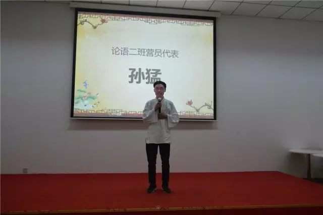 第二位分享心得的营员孙猛来自于论语二班。《论语》倒数第二篇曰:君子斯不亦威而不猛乎。孙猛同学虽名为猛,为人却温良恭俭。他毕业于北京师范
