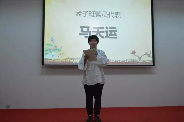最后一位分享的营员代表是孟子班班长马天运。他来自北京师范大学教育学专业,在早前参加完我们的论语一百的白杨沟冬令营之后,深深地喜爱上了经典。现在又参加了我们论语一百夏令营的孟子班,目前《孟子》的诵读已经超过100遍。他的发言让我们一起见证两次夏令营给他带来了气质升华和容颜改变。大道至简,悟在天成。马天运的分享虽无华丽的辞藻,却不可谓不精彩,不可谓不感人,点点滴滴,浸润人心▼