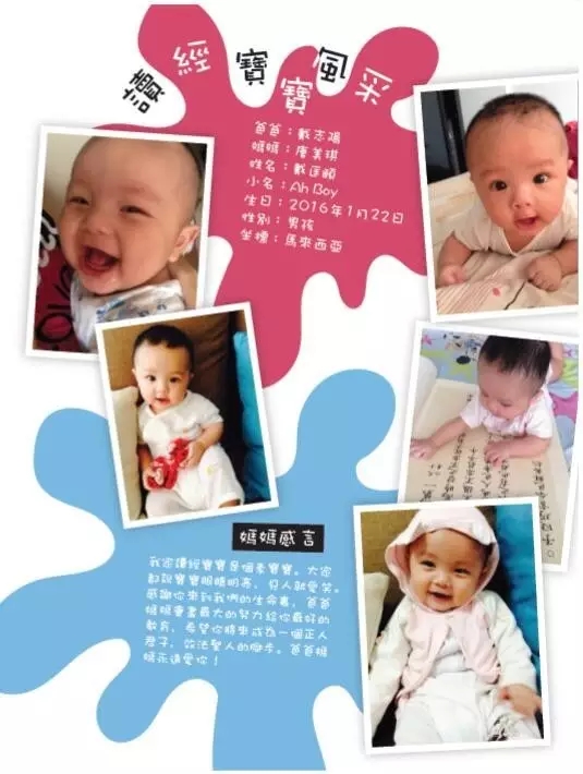 父母寄语:你是读经宝宝,美名子曰。从你呱呱坠地,到现在蹒跚学步,一载的光阴,我们很荣幸见证你的每一步成长。妈妈陪你读书,看名画字卡,爸爸逗你玩游戏,搭建小积木,我们一起共筑爱的小窝。愿你健康快乐,成为温良恭俭让的君子。