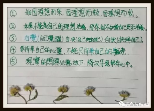 我们这些天学习了一些新东西,先跟您说《曾文正公日课十二条》吧。这个是曾国藩先生的修身日课,也有助于我们的学习和成长。所以老师让我们以它作为我们每日反省的依据。就是以上面所写的和我们平日里所做的一一对照,然后反省出每日做的不足的地方。所以我感觉我最近一段时间的日记都写得超级超级good。而且老师最近在班上念了我的四五篇日记(小骄傲一回哈)。最近同学们也有说我的性子有所改变,他们还引用了新生函里的一句话“变化气质,明澈性灵”,也许有些太大,但我觉得我能承受的住(确实有点大)。自我感觉好像从小读经读的那种气质有开始在我的身心散发出来,好象我最近说话可有内涵了(表扬与自我表扬相结合),而且也有了一点感觉,比之前说话也有了一定的提升(自我感觉良好)。所以我感觉从小读经的功力在现在好像已经要冲破我的洪荒之所,要破土了。可能你下次都不会承认我是你女儿了,因为我可能比你还要有高度。不过我知道你是希望我这样的,对不?(还挺了解我的哈)(前面那句话是在开玩笑,别当真哦,老爸!)(这是怕我生气安慰我呢!我有那么小气吗?欢喜还来不及呢!)