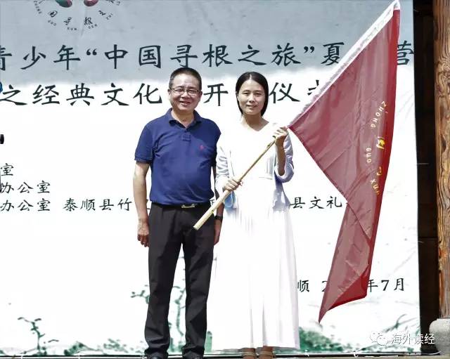 第五项,泰顺县统战部部长童德平先生宣布经典文化营开营。并向经典文化营营长杨嵋授旗。